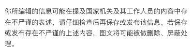 为什么公众号发的只是一个政府工作某方面的案例解决方案,但是系统提示有这个? 文章中并不存在不严谨的表述哇 影不影响发布?