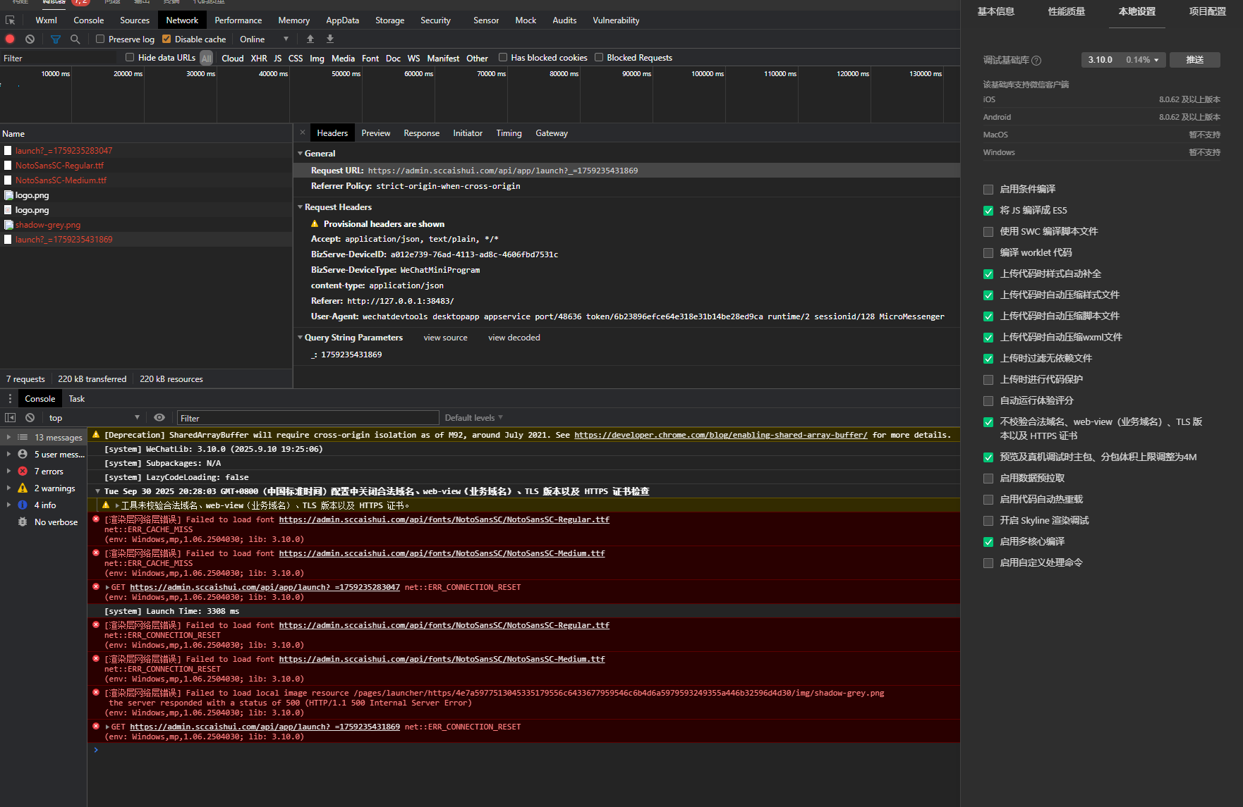 但是在微信开发者工具中,去请求 还是出现了跨域标识。