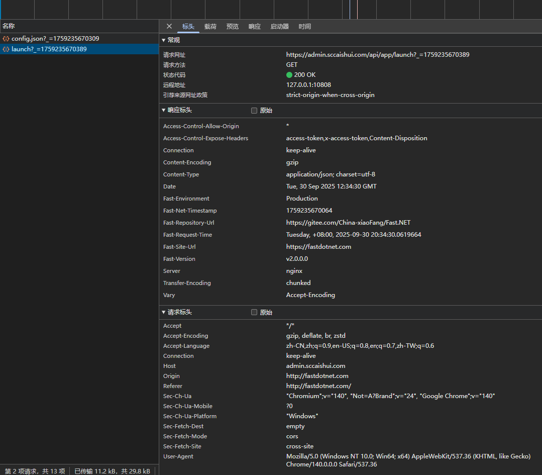 为了防止出现跨域的问题。我在另外一个站点做了接口请求测试。正常返回 200 和跨域标识。