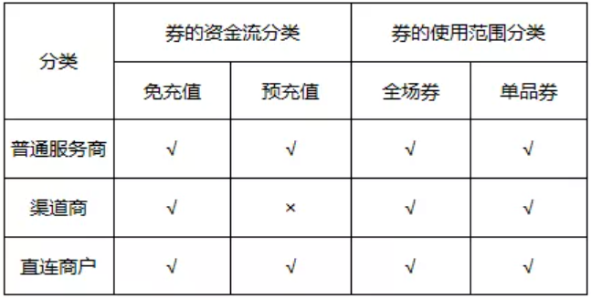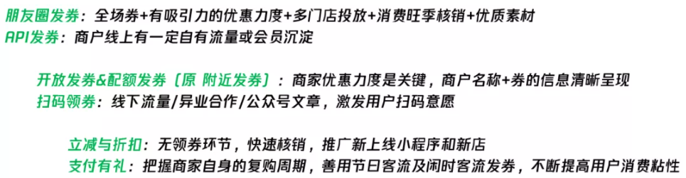 下图列明这几款产品的发券场景,可搭配商户不用的营销需求。