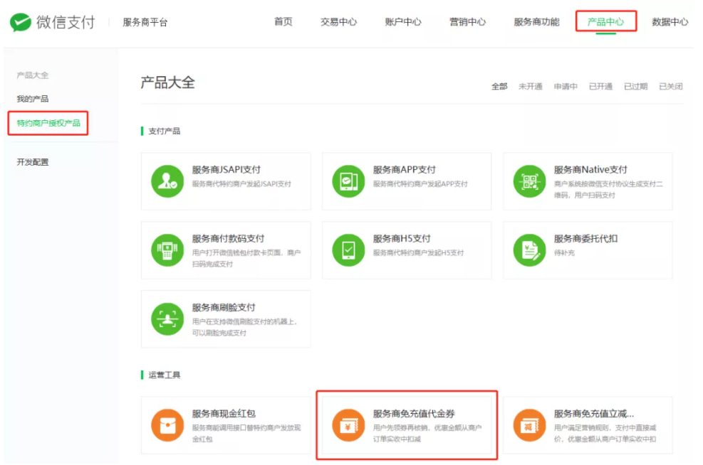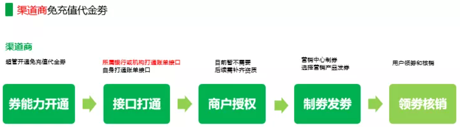 做免充值券需打通免充值接口:服务商开通能力→服务商打通接口→商户开通能力→商户授权服务商→免充值代金券/立减折扣能力→商户开通代金券/立减折扣能力