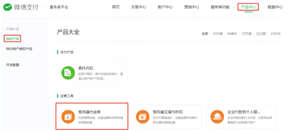 如您还不是微信支付收单服务商,需申请微信支付普通服务商账号。申请成功后即可在服务商平台直接投放智慧经营相关营销产品,无需再次报名。