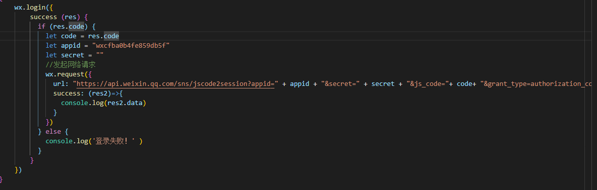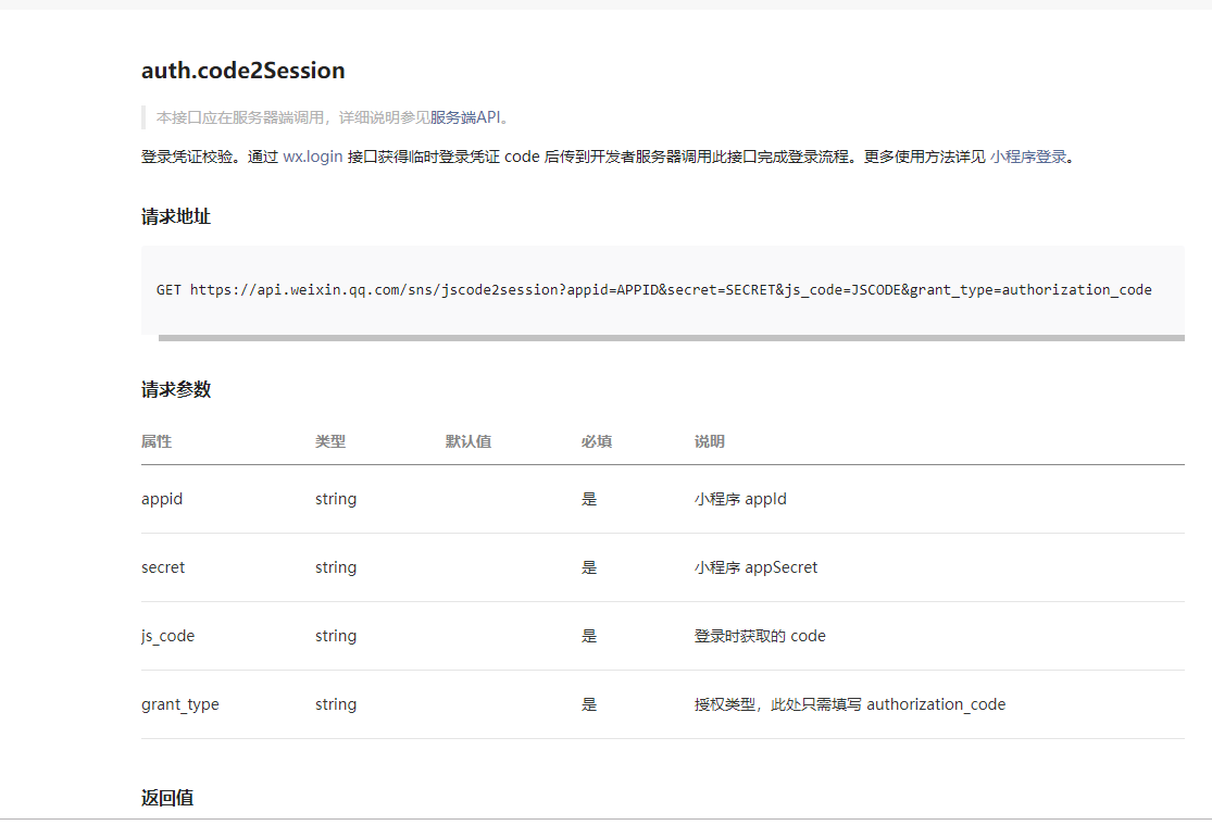 url: "https://api.weixin.qq.com/sns/jscode2session?appid=" + appid + "&secret=" + secret + "&js_code="+ code+ "&grant_type=authorization_code",