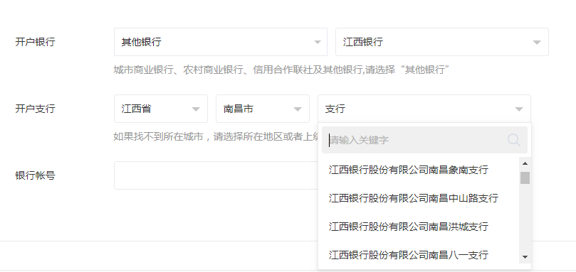 有无开户银行全称(含支行)和省市的对照表或相关API。如微信支付商户申请中的开户支行数据
