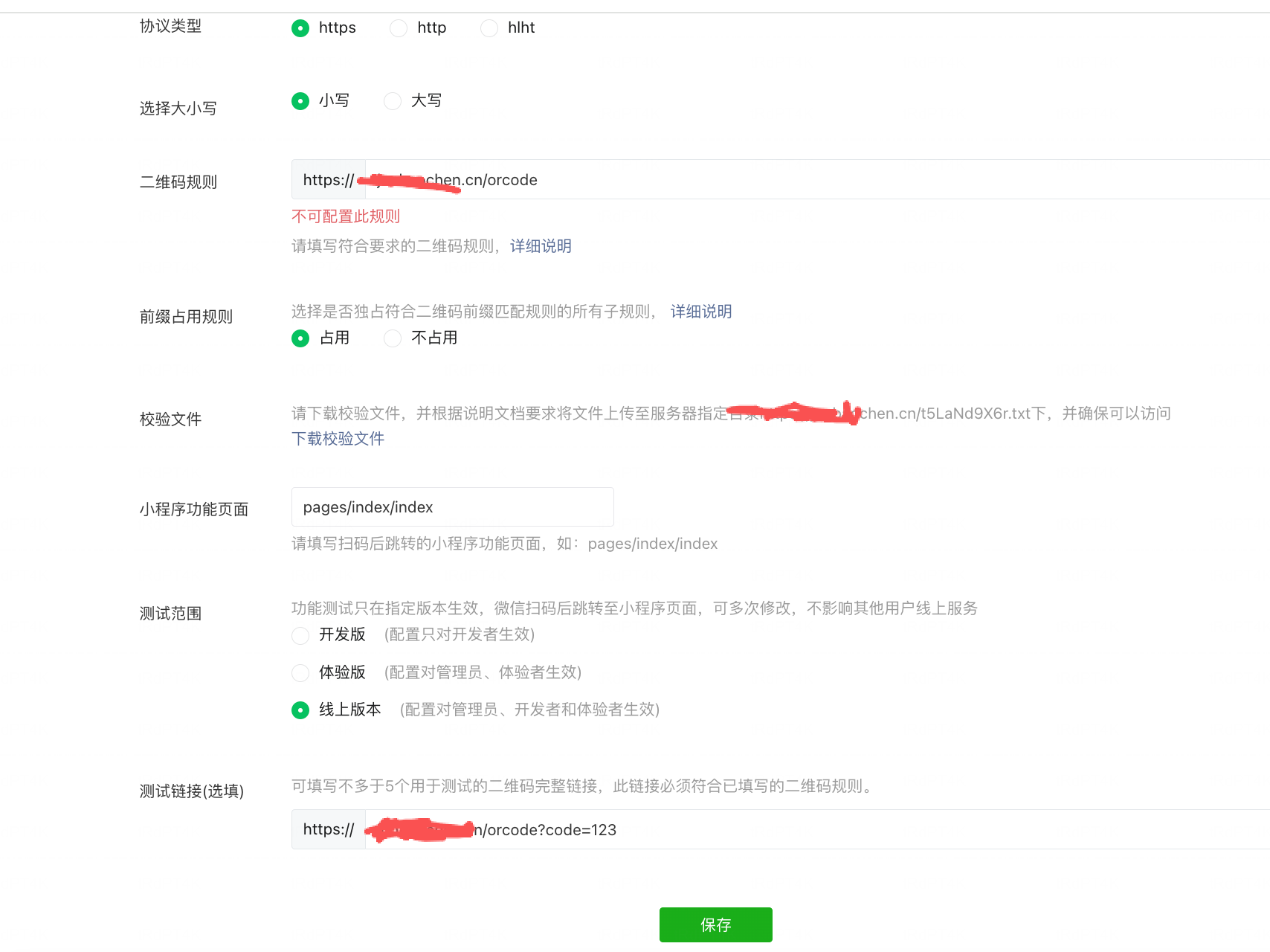 https://developers.weixin.qq.com/miniprogram/introduction/qrcode.html 为什么就是配置不了 域名也备案了