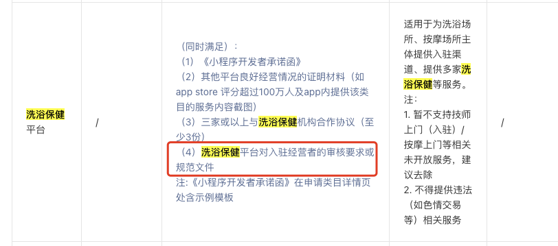 小程序要增加洗浴保健平台类目,但是不知道洗浴保健平台对入驻经营者的审核要求或规范文件指什么?要去哪里申请?
