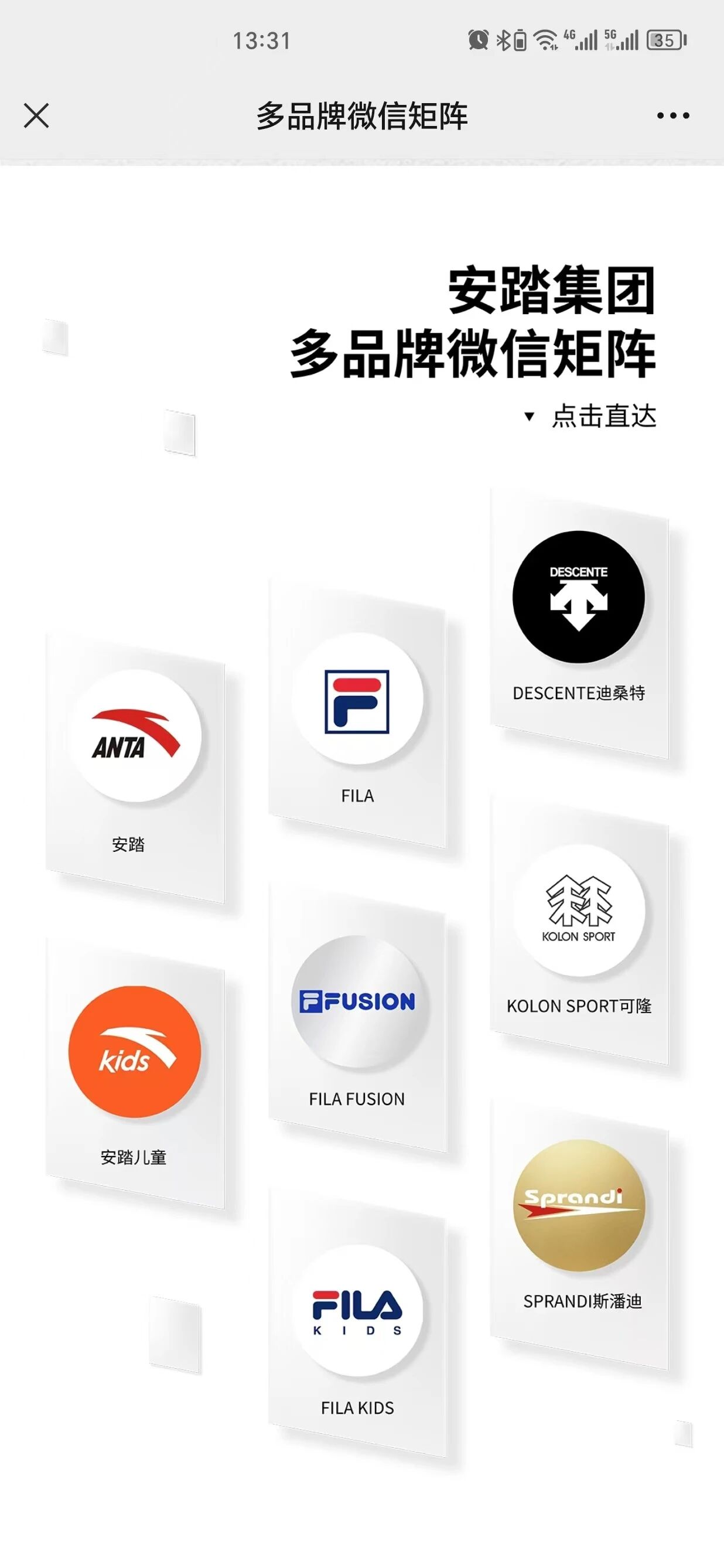 例图点击安踏集团——旗下品牌——fila图标——直达页面