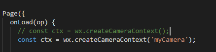 //获取应用实例const app = getApp()Page({ onReady() { // app.loading(false) }, onLoad(op) { var ctx = wx.createCameraContext(); this.handleAuth(ctx, this) }, handleAuth(ctx, me) { wx.getSetting({ success(result) { result && result.authSetting['scope.camera'] ? me.takePhoto(ctx) : wx.authorize({ scope: 'scope.camera', success(result) { console.log('wx.authorize succeed') me.takePhoto(ctx) }, fail(result) { app.toast('授权失败') } }) } }) }, takePhoto: function(ctx) { let me = this me.setData({ discernVisible: true }) ctx.takePhoto({ success: function(photo) { me.facecPhoto(ctx, photo.tempImagePath) }, fail: function(error) { console.log('Take photo error:' + JSON.stringify(error || 'uncatch exception')) } }) }, facecPhoto(ctx, facePhoto) { let me = this ajax(app.api.facecPhoto, function(result) { if (result.statusCode == 200) { } else { me.takePhoto(ctx) } }) }