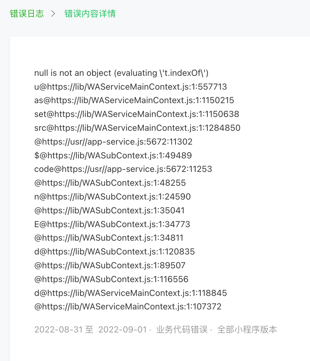 错误日志告警null is not an object (evaluating \'t.indexOf\')