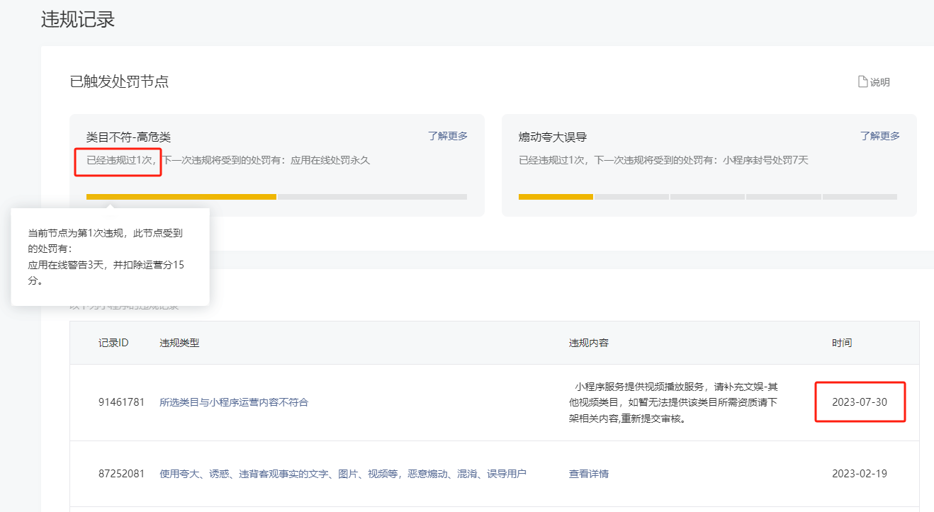 不是,由于之前误判的原因,已经违规申诉成功的这种居然被记录在案了?这合适吗?这个违规是用了跳转到视频号的功能,结果被说是要求补充文娱-其他视频类目。后来也是申诉成功了的,结果整这出,大哥,要不然视频号的相关接口不如直接给删了?