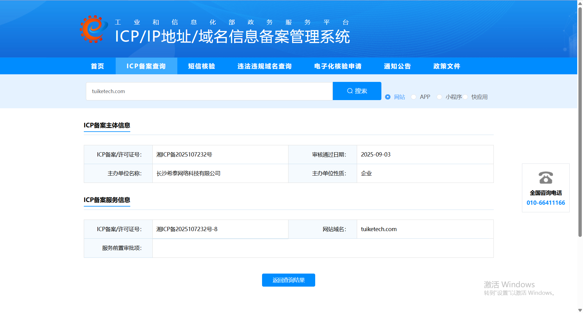 域名:tuiketech.com是最近新备案的,但是无法访问,麻烦核实一下