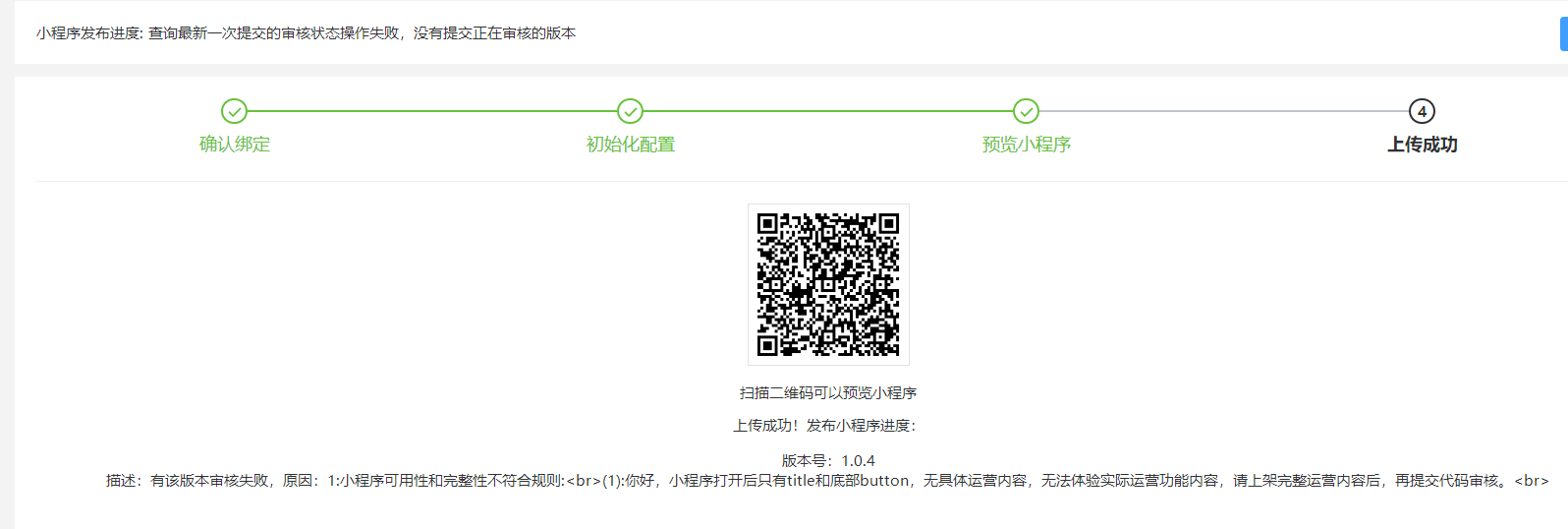 你好,经核实,贵方小程序最新提审版本有具体运营内容,可以体验实际运营功能,且审核已完成,请留意站内信!