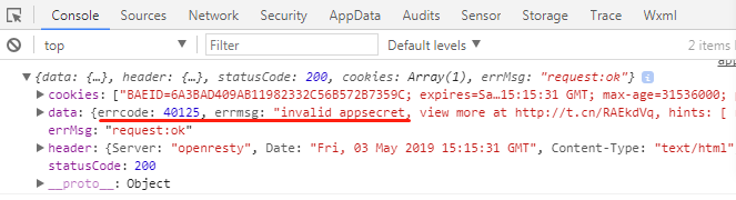 编译运行时,开发者工具的console栏总是提示“40125 invalid appsecret”错误,然而已经全面检查了程序,依然提示这个错误,