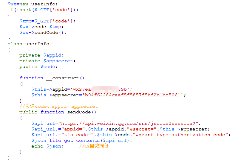 朋友,虽然我没写过php,但肉眼可见的问题在appid和appsecret不一样啊,前者比后者多了一个"."
