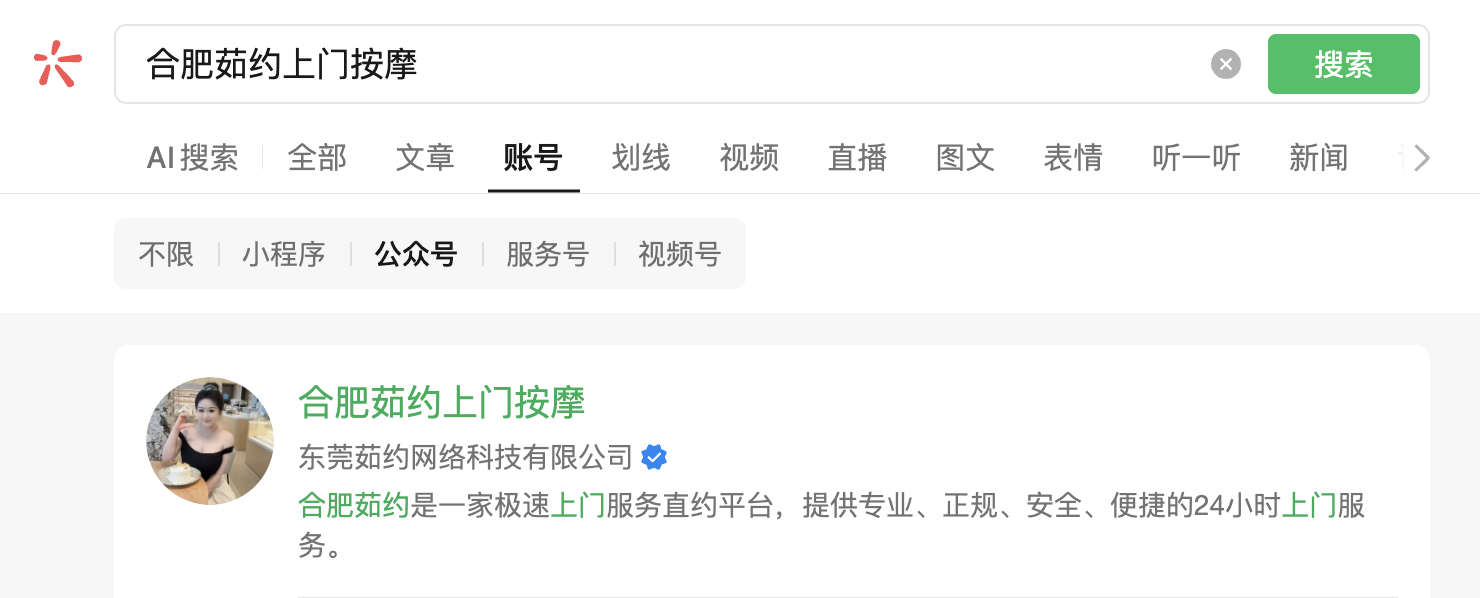 合肥茹约上门按摩公众号全称搜索不到?