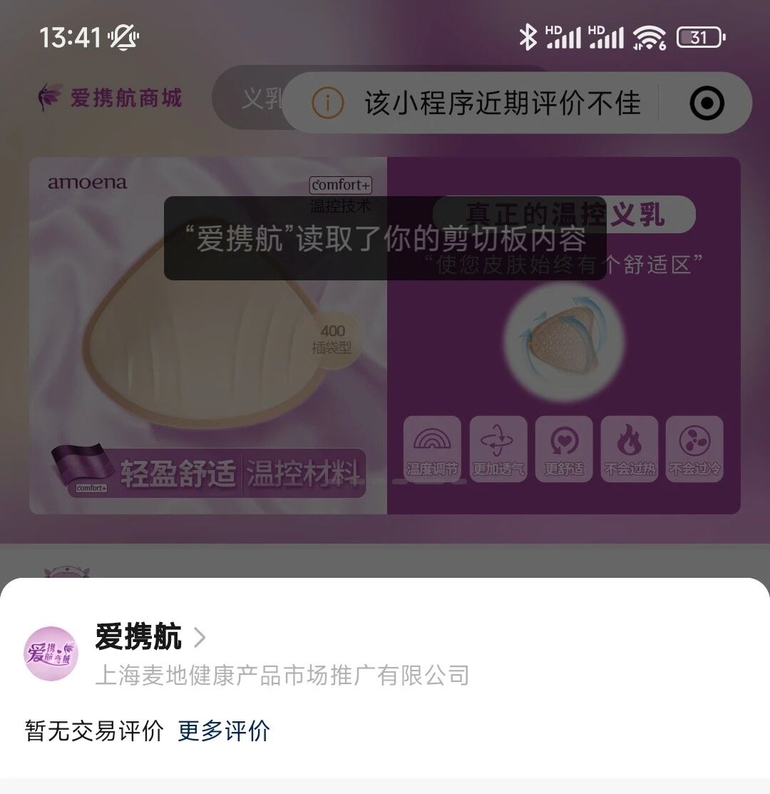 爱携航:小程序差评已经联系客户处理好了,页面还是显示差评。也重新发布了小程序,后台差评也删除了,还是显示这样的页面提示!