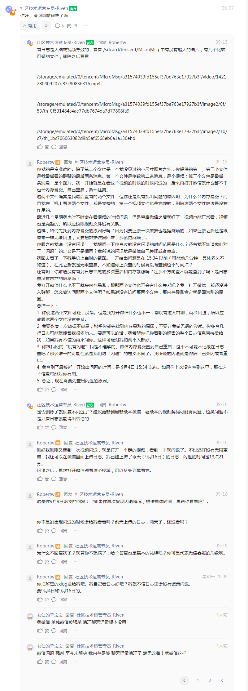我这个Bug是最近经常出现看视频或图片的时候闪退,直到昨天突然严重到无限重启,无法使用。所以应该不是可复现的Bug。但是我有保留 /data/data/com.tencent.mm/files/xlog 和 /storage/emulated/0/tencent/MicroMsg/xlog 两个目录的文件(这应该是日志文件吧?)。