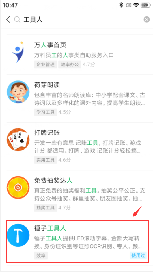 现在搜索"锤子”能搜索到了