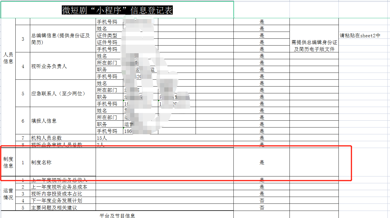 你好我想问一下微短剧“小程序”信息登记表中的“制度信息”是指哪方面的制度