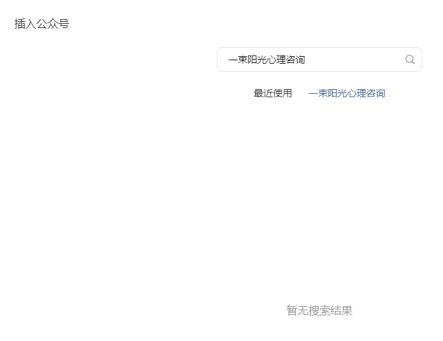 过去在文章中插入名片一直是正常的。但今天不知咋啦,搜索任何关键词都显示暂无搜索结果。