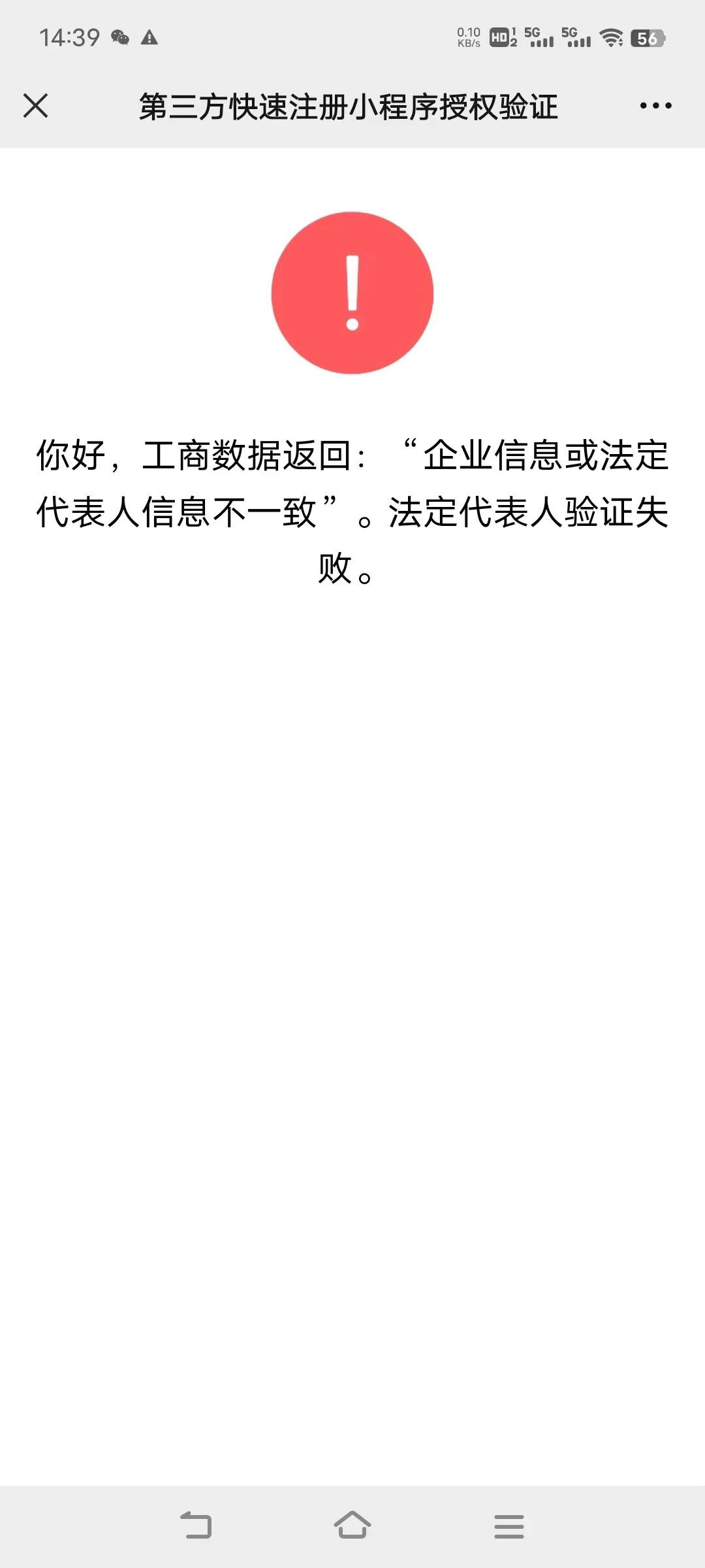 小程序开通时,需要法人验证信息,核对过企业信息没有变更过,法人微信也是自己实名过的,但是验证不通过,这个是什么情况啊