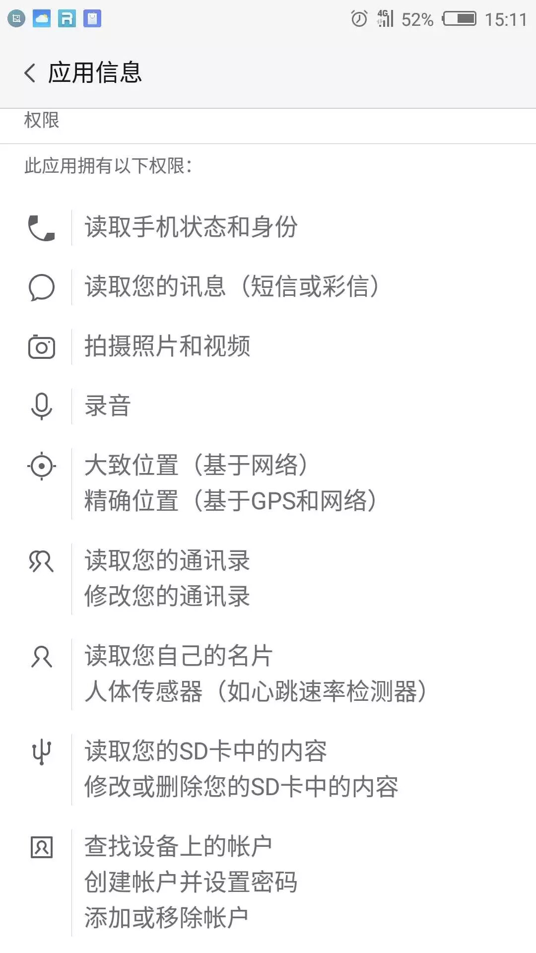 可以看到我的微信的确是有 拍照和视频的权限的。