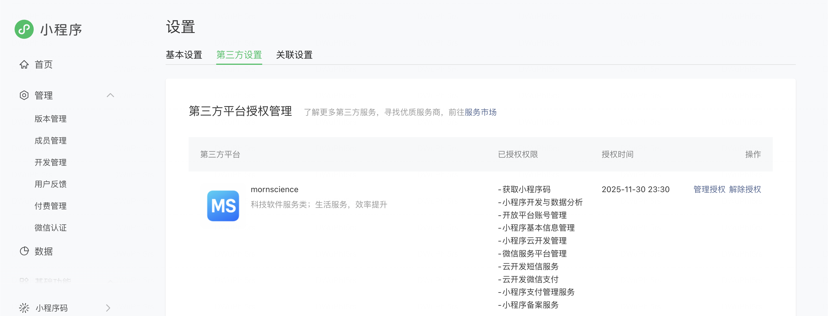 “我们的第三方平台已获得小程序授权,在服务商微管家的‘授权账号管理’中可见且状态正常,但