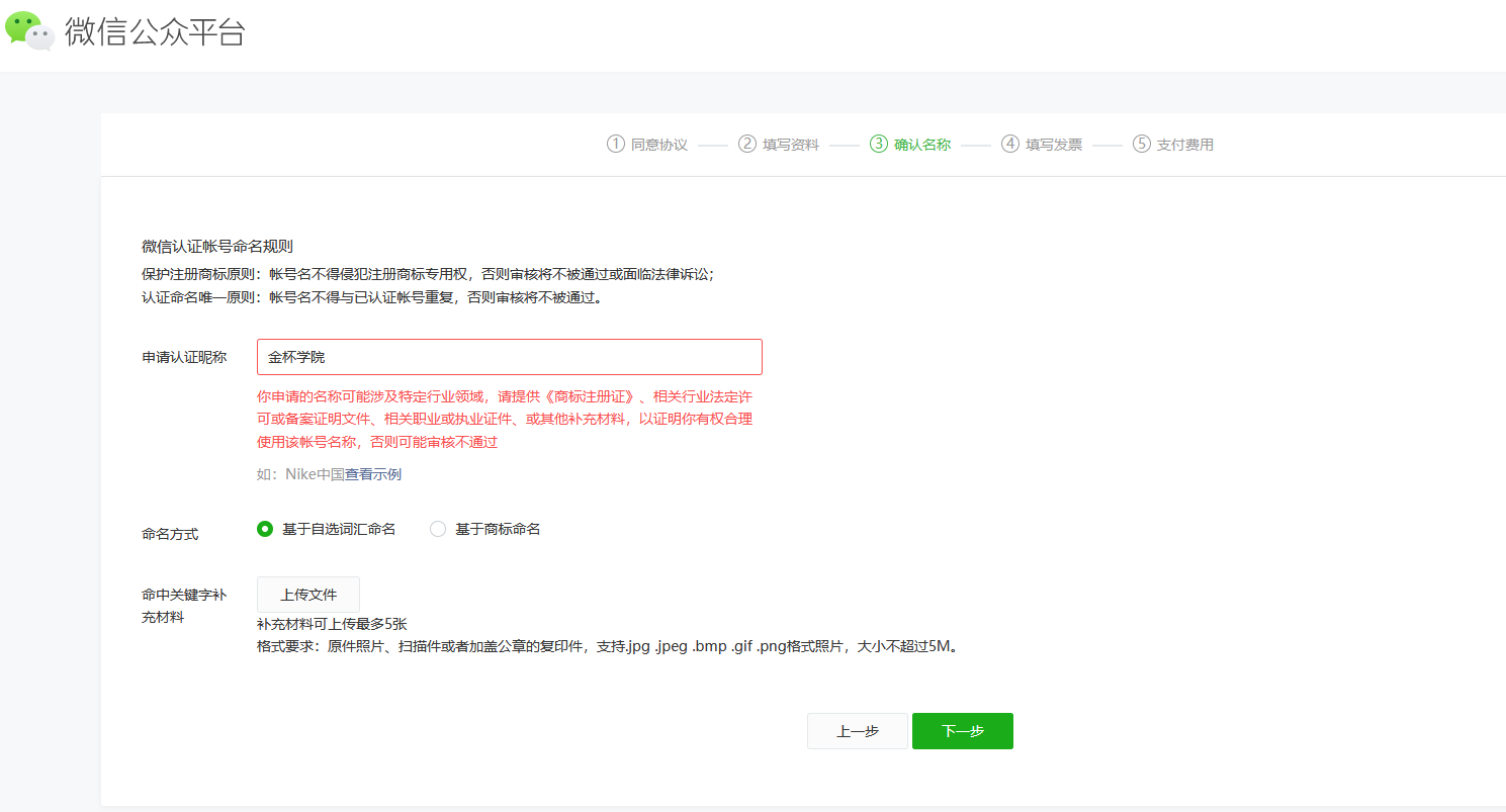 你好,企业字号+学院可支持,请正常提交营业执照审核