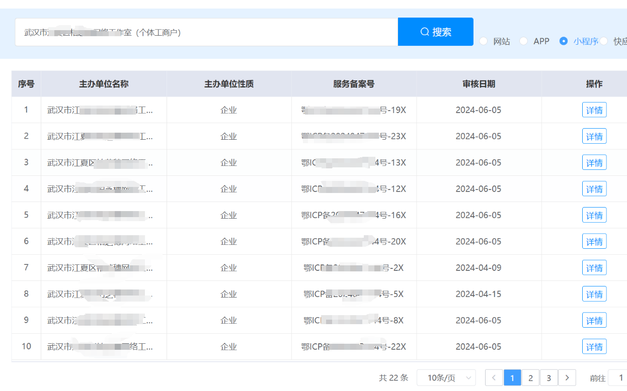 备案查询到的不一定只是微信的小程序备案,支付宝、抖音等其他小程序也都是在一起的。
