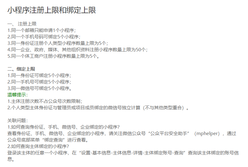 微信小程序最新规定个体户只能注册5个,以前最多50个。