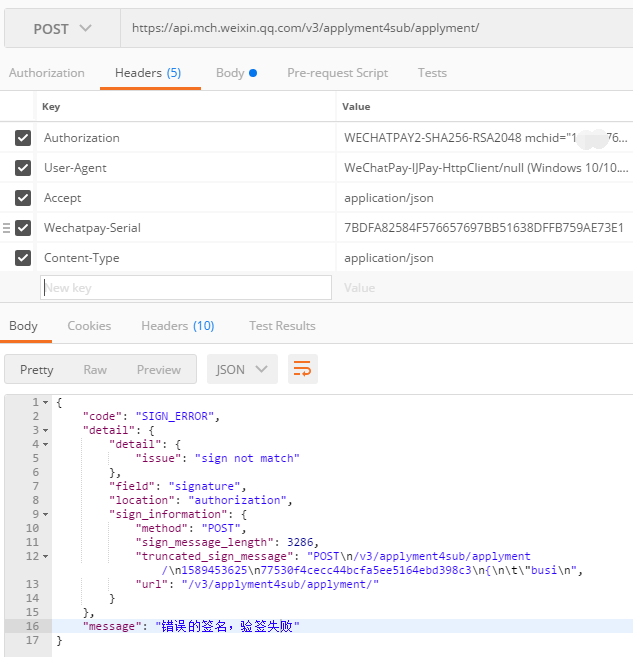 用 Postman 测试,却可以,也只是因为时间问题 验签出错而已。