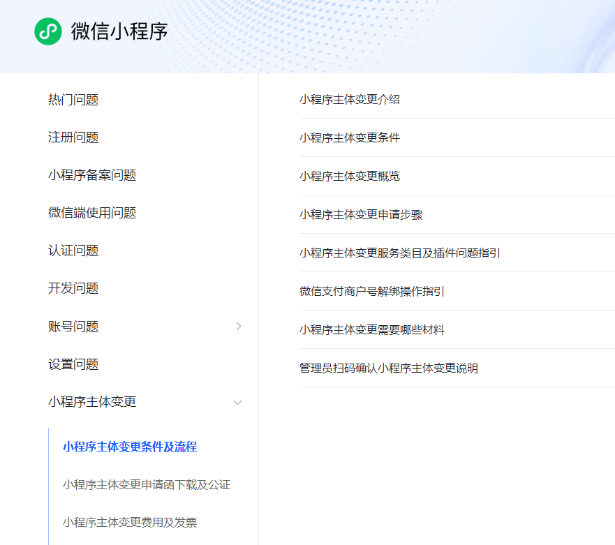 小程序主体变更流程及材料有哪些?周期多久?费用多少?在哪能详细查询到呢?