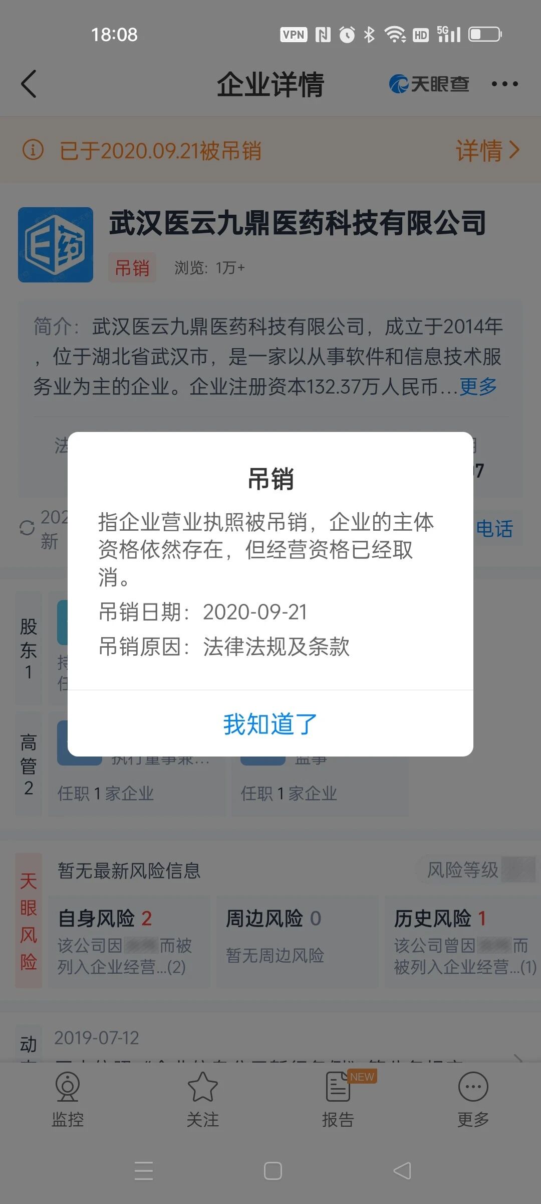 由于这个公众号发布了干扰企业正常经营的负面信息,而且多数内容属于恶意攻击企业,给公司造成了不良影响。于是去查询了这家公司的认证主体,发现主体已经被吊销营业执照,如下图: