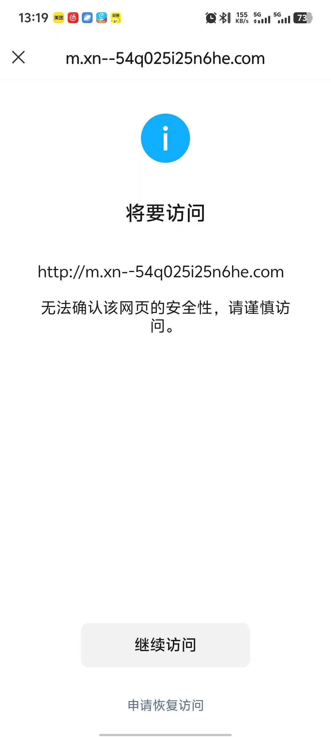 您好,域名阳光高考.com在百度云注册并备案通过,http://m.阳光高考.com浏览器访问正常,我是网站开发者,访问时间如图2025/12/01,点开网址提示“无法确认该网页的安全性,请谨慎访问。”经检查网页里没有不安全的内容,请核实后帮忙解除拦截,谢谢!尽快处理,急急急,现在需要打开使用,谢谢啦