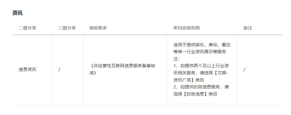 2.核实到小程序最新提审版本已有资讯-信息资讯服务类目可支撑该服务,辛苦耐心等待审核。