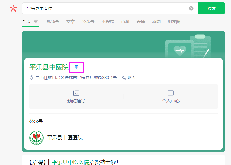 医院级别是2甲,微信搜一搜却显示一甲,怎么改
