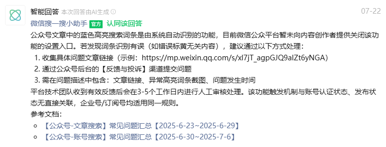 微信公众号的文章里面莫名其妙的标注一个词条然后出现搜索放大镜的东西,能不能关闭,怎么关闭