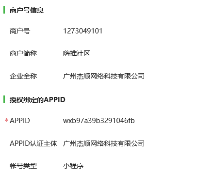 微信支付商户号:1273049101 在这个商户号下授权 AppID(小程序ID): wxb97a39b3291046fb