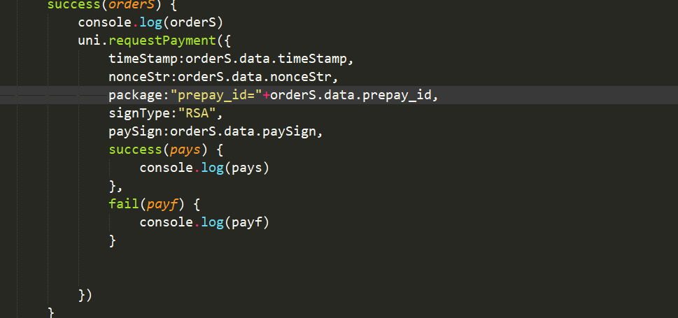 paySignData 是签名的数据 上面参数为 appid\n时间戳\n随机字符串\n下单的时候返回的代码