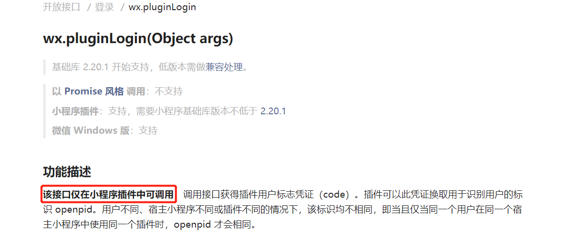 在开发工具新建的插件工程没做任何修改,增加wx.pluginLogin()代码后,显示以下错误。基础库版本是:2.30.2