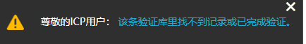 再次去icp备案链接填写提示找不到记录或已完成验证