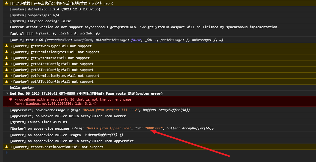 在微信开发者工具中,worker 文件中可以收到 app.js 发送来的信息。