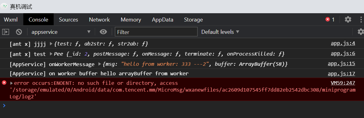 在真机调试时,worker 文件 收不到 app.js 中发来的信息,app.js 却能收到 worker 中发来的信息。