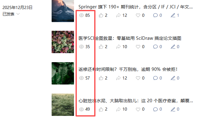 但有意思的事情发生了,后台好像在给我补数据。总统计界面的阅读人数比前台的阅读人数更多。
