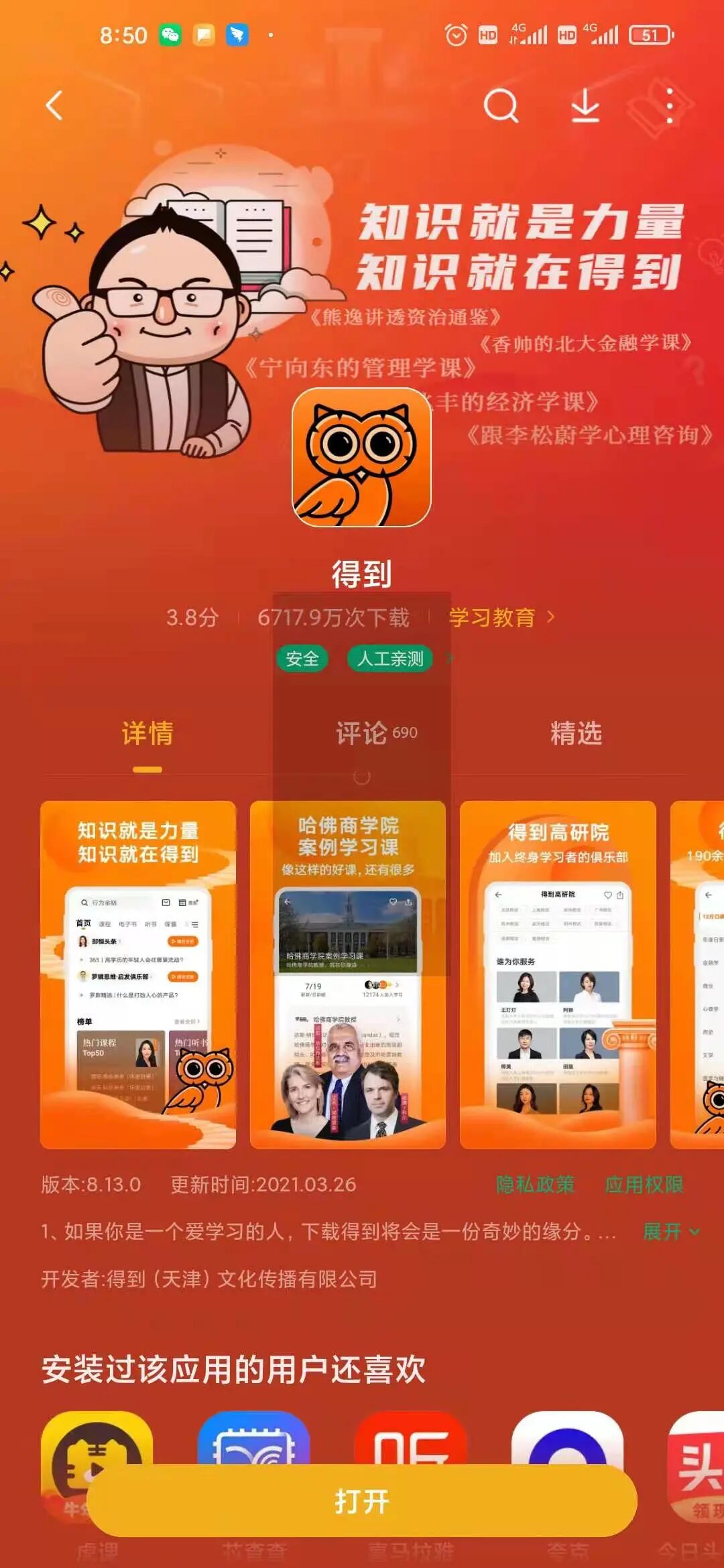知识付费领域影响力最大的“得到”APP您随便一个应用市场搜一下就能找到