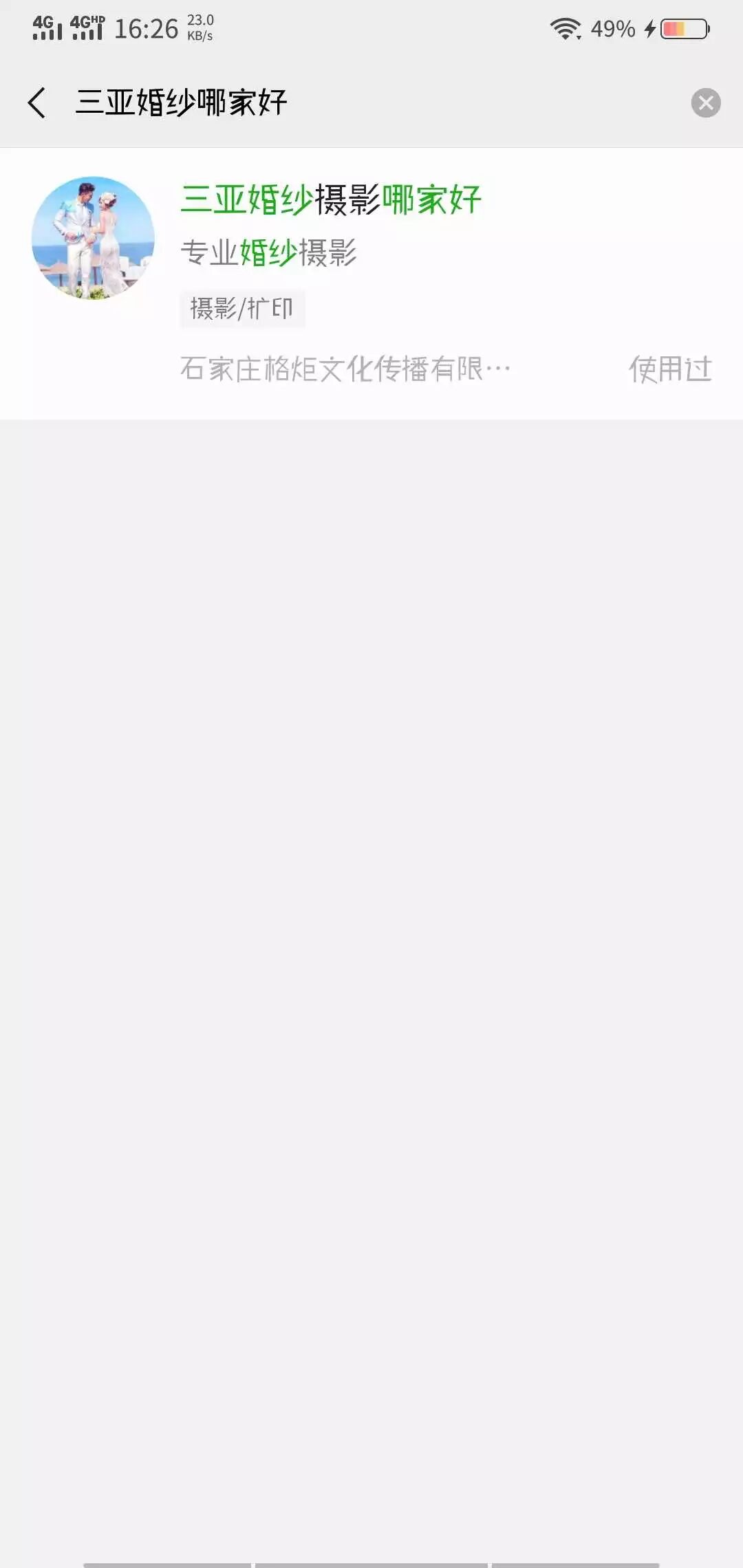 您提供的小程序id核实名称为“皇家捌号婚纱摄影” ,请使用全称进行搜索。模糊搜索不保证搜索出您的小程序。