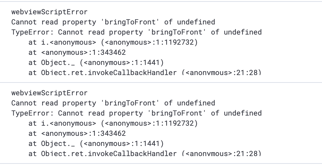 最近一直收到:Cannot read property 'bringToFront' of undefined