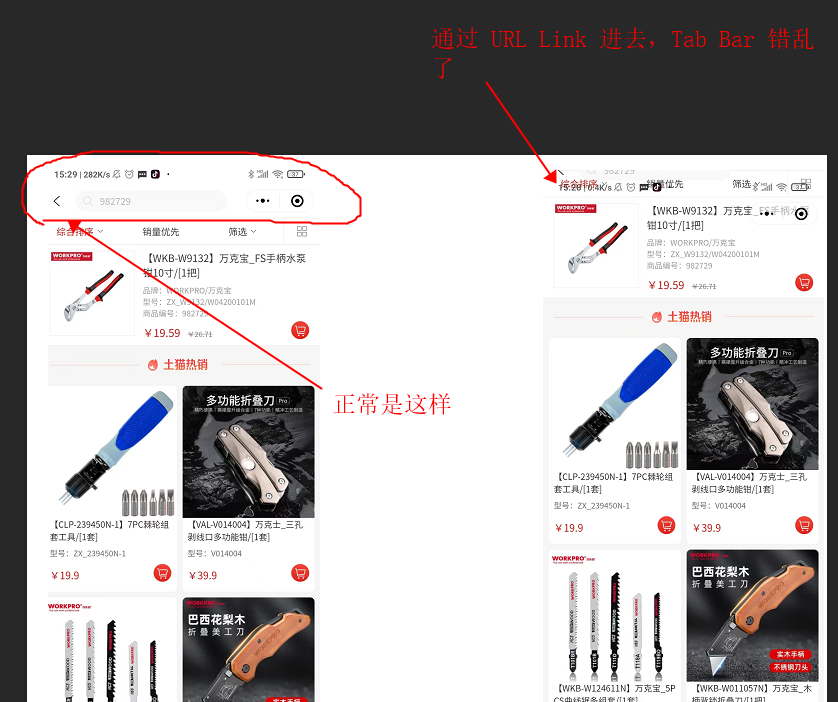 但进入到小程序页面,Tab Bar 的位置错乱了