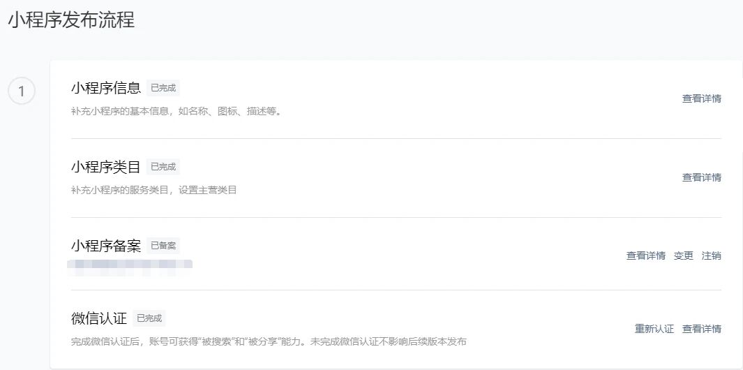 在小程序后台,账号设置--设置--基本设置--基本信息--小程序备案,这里查看