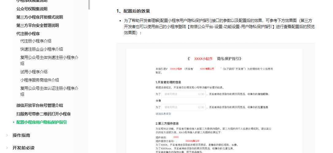 效果展示可以参考下https://developers.weixin.qq.com/doc/oplatform/Third-party_Platforms/2.0/product/privacy_setting.html
